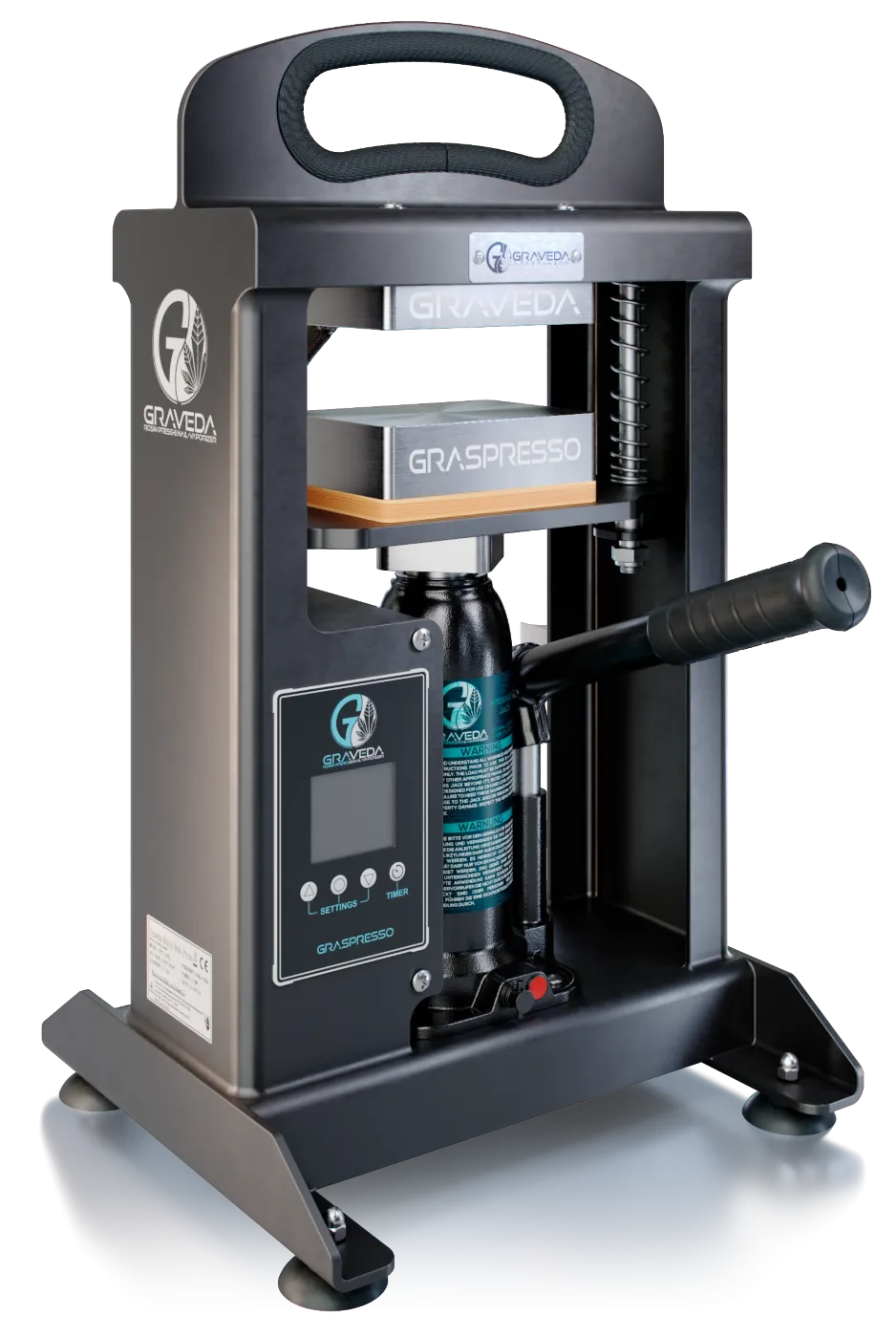 The generous 10 cm x 7.5 cm heating plates ensure even heat distribution, essential for the quality of your final product. The press's intuitive control element, a user-friendly touch panel, makes operation a breeze – even with silicone gloves. The Graspresso GP6003 combines innovative technology with the familiar Graveda value for money.